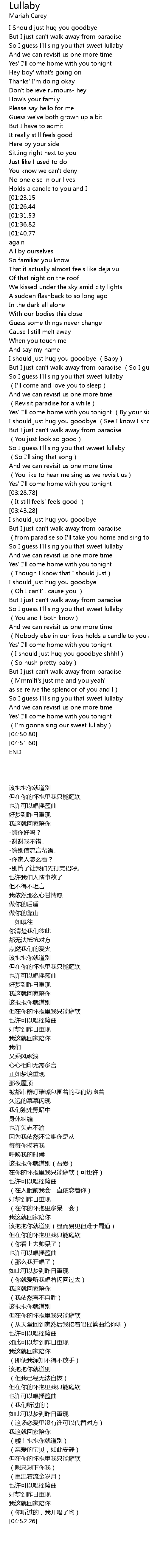 | [01:52.23][01:31.53] | So I guess I' ll sing you that sweet lullaby |