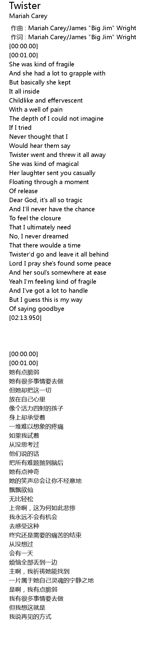 | [00:00.00] | 作曲 : Mariah Carey/James "Big Jim" Wright |