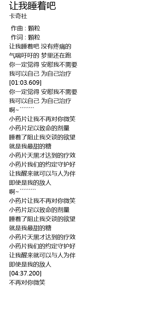 | [02:59.320] | 小药片天黑才达到的疗效 |