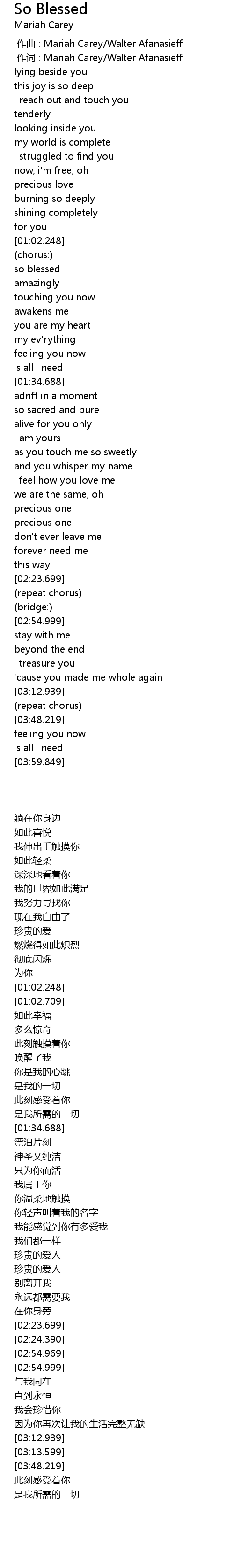 | [00:01.00] | 作词 : Mariah Carey/Walter Afanasieff |