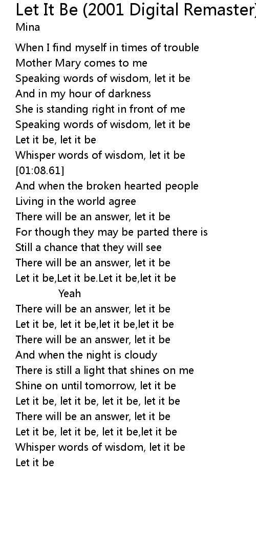 Let it be, let it be,let it be,let it be |