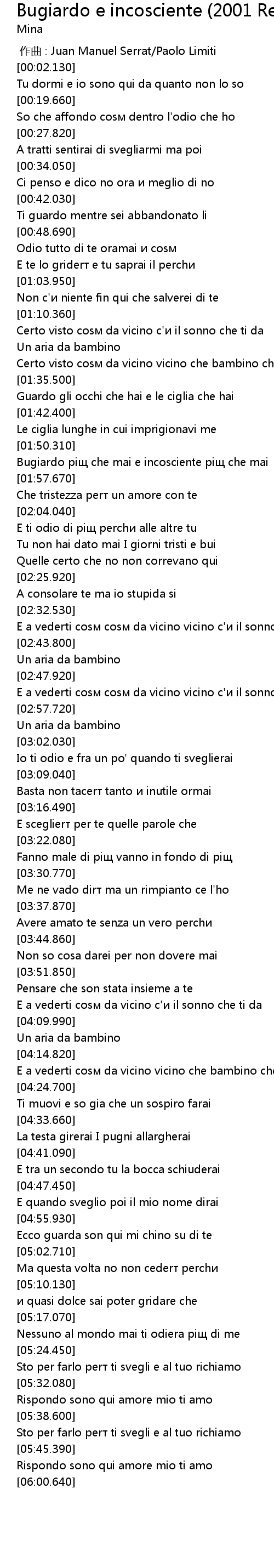 | [01:52.080] | Bugiardo piщ che mai e incosciente piщ che mai |