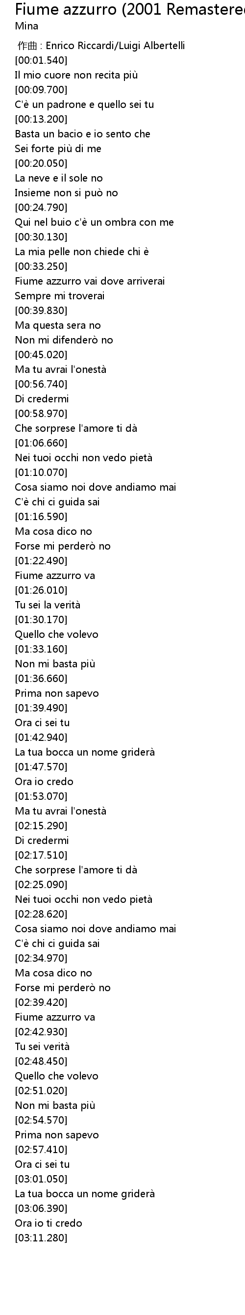 | [00:35.210] | Fiume azzurro vai dove arriverai |