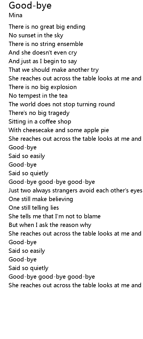 | She reaches out across the table looks at me and quietly says good-bye | |