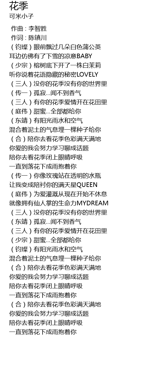 | [00:52.000] | (三人)有你的花季爱情开在花田里 |