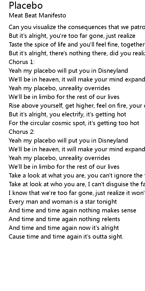 Yeah my placebo, unreality overrides |