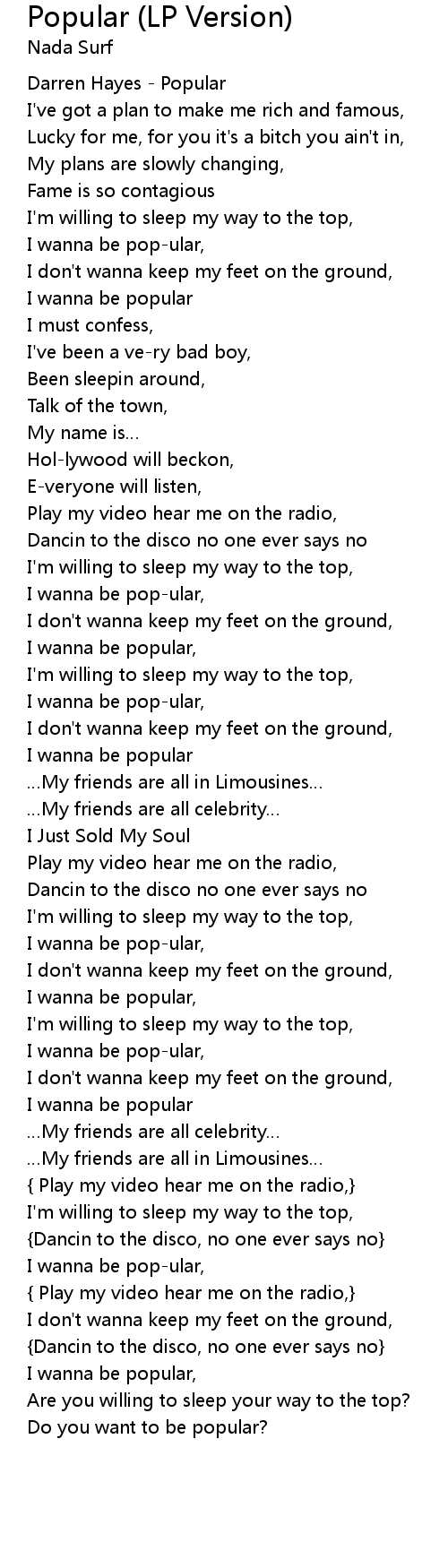 | [02:42.75] | I' m willing to sleep my way to the top, |