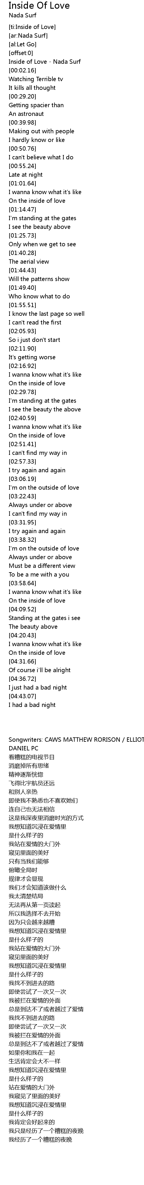 | [02:46.52] | On the inside of love |