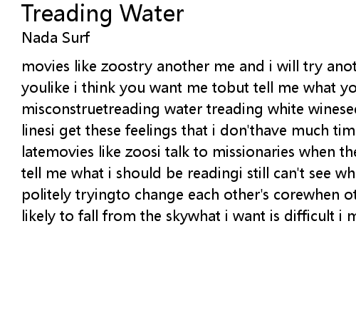 movies like zoostry another me and i will try another youor put my arms around youlike i think you want me tobut tell me what you're thinkingi so often misconstruetreading water treading white wineseeing borders seeing straight linesi get these feelings that i don'thave much timealways rushing always latemovies like zoosi talk to missionaries when they'restanding at my doorthey tell me what i should be readingi still can't see what forwe both stand there politely tryingto change each other's corewhen other angels float bythey seem likely to fall from the skywhat i want is difficult i must try |