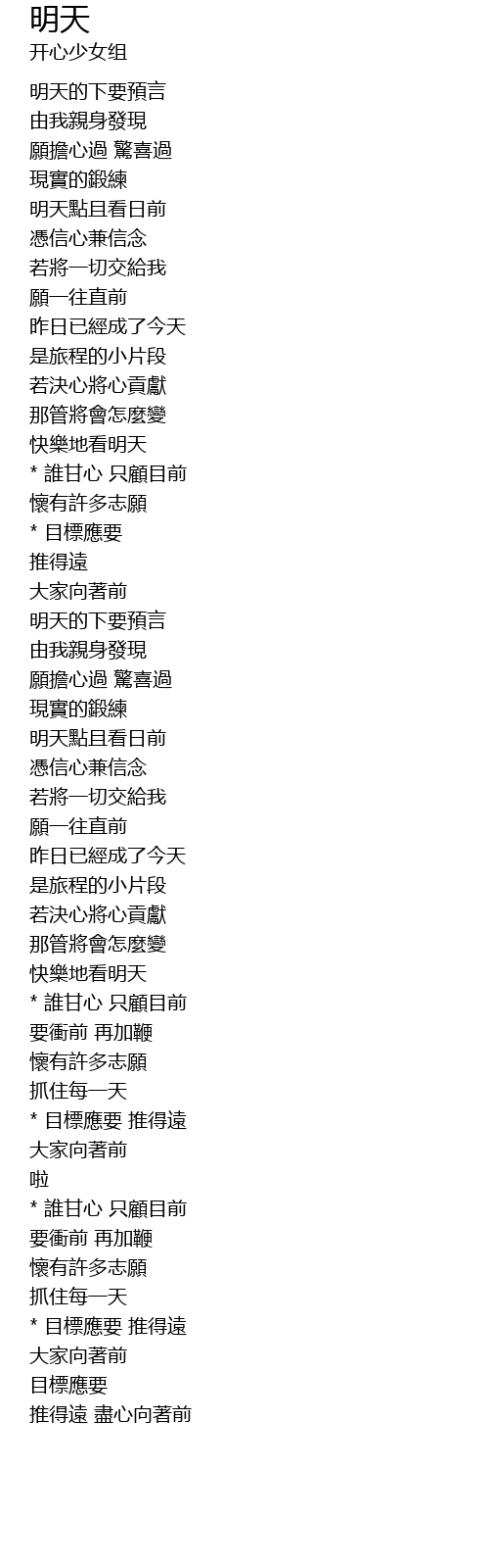 | [00:59.30] | kuài lè dì kàn míng tiān |