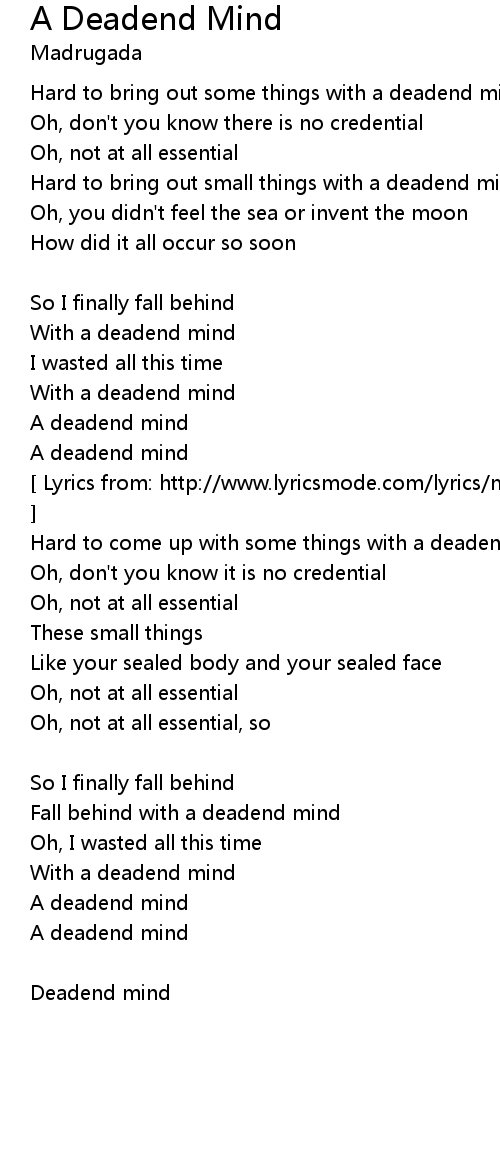 [ Lyrics from: http://www.lyricsmode.com/lyrics/m/madrugada/a_deadend_mind.html ] |