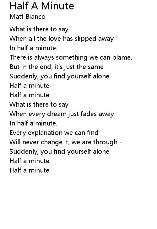 | Song | Half A Minute |