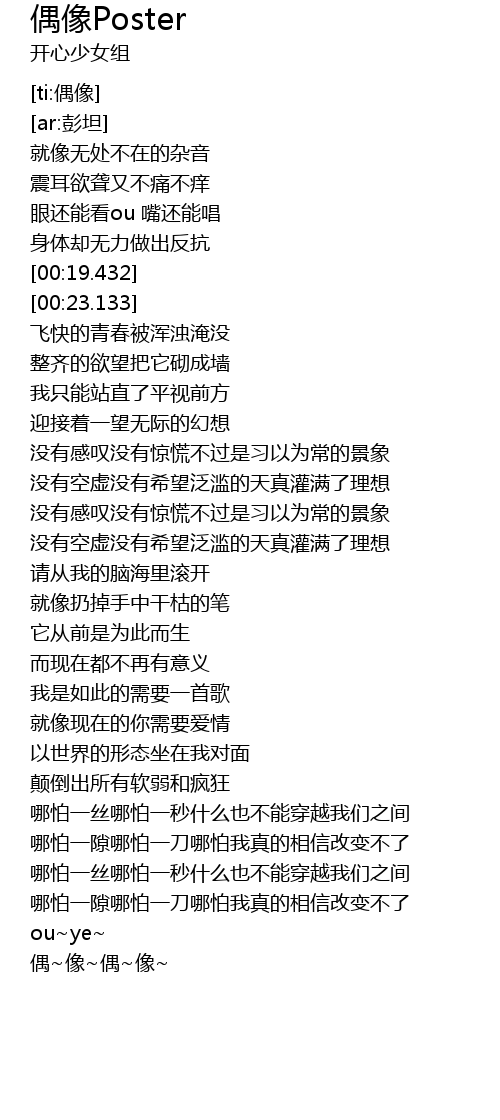 | [02:59.407] | na pa yi xi na pa yi dao na pa wo zhen de xiang xin gai bian bu liao |