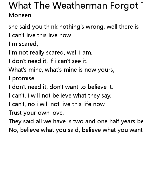 | Song | What The Weatherman Forgot To Tell You |