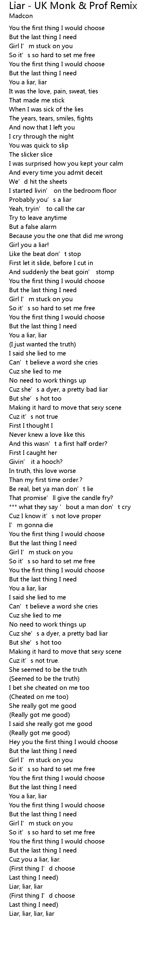 | Probably you' s a liar | |