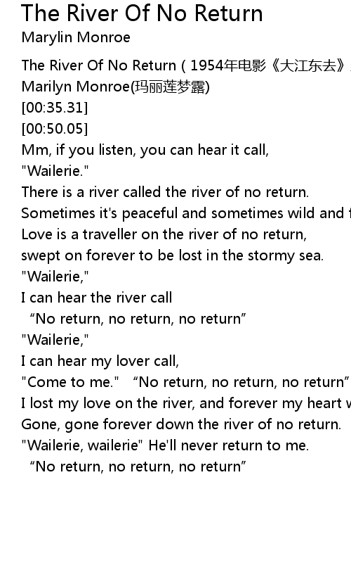 | [00:09.95] | The River Of No Return(1954年电影《大江东去》主题曲) |