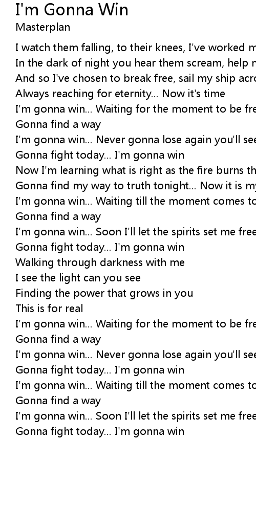 I'm gonna win... Waiting till the moment comes to me |