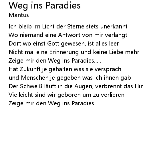 | Zeige mir den Weg ins Paradies....... |