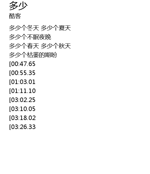 | [02:31.55][00:47.65] | 多少次寻找 多少次呼唤 |