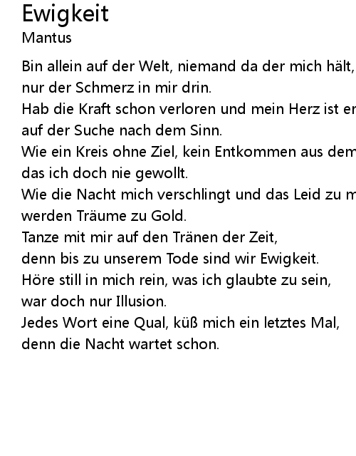 | Bin allein auf der Welt, niemand da der mich h lt, | |