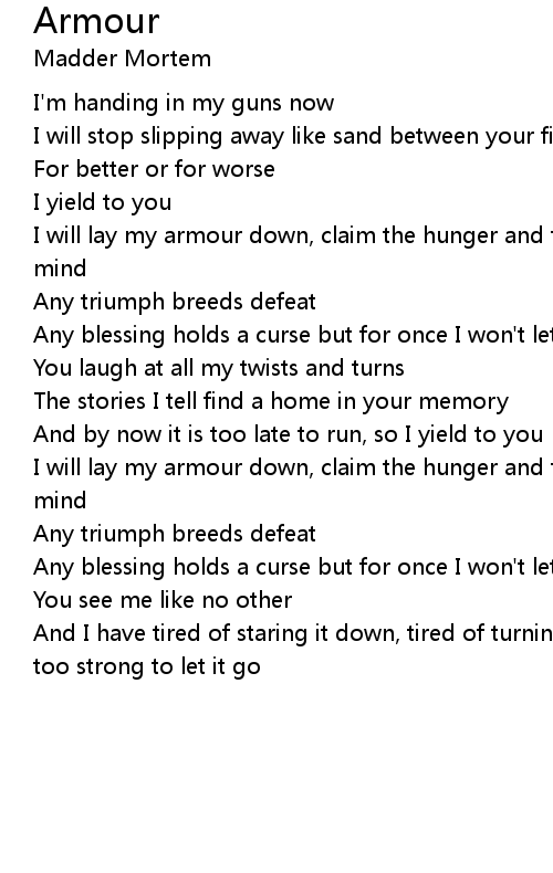 I will lay my armour down, claim the hunger and the words that were always on my mind |
