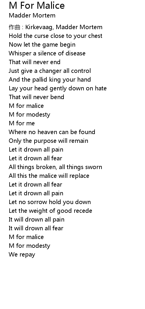 | Song | M For Malice |