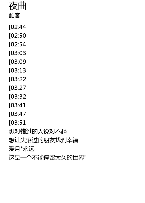 | [00:09][02:44] | 给我一点烛光' |