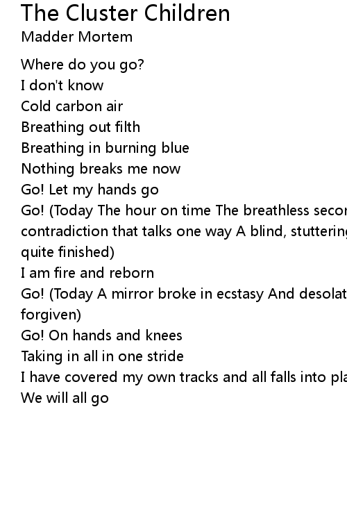 Go! (Today The hour on time The breathless second Another perfect view) (Today A contradiction that talks one way A blind, stuttering fool is healed I'm not quite finished) |