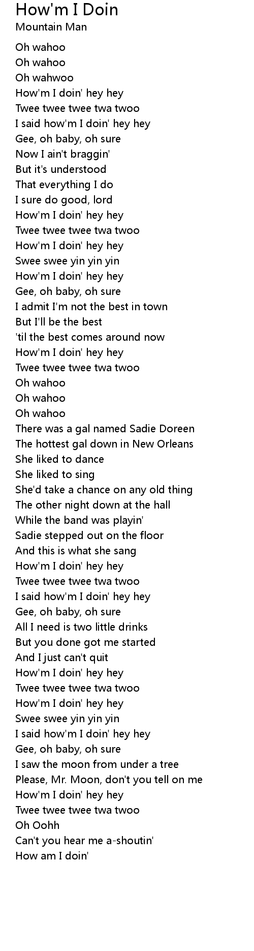 How am I doin' |