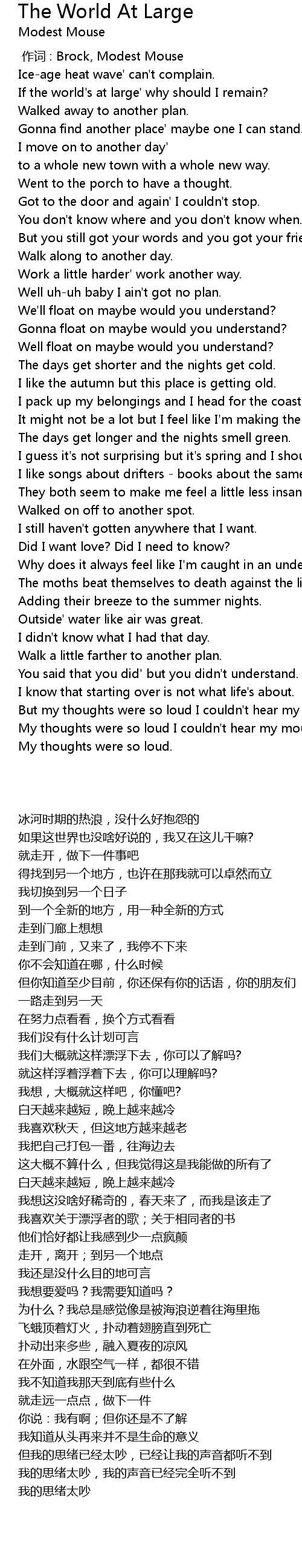 | [00:00.00] | 作词 : Brock, Modest Mouse |