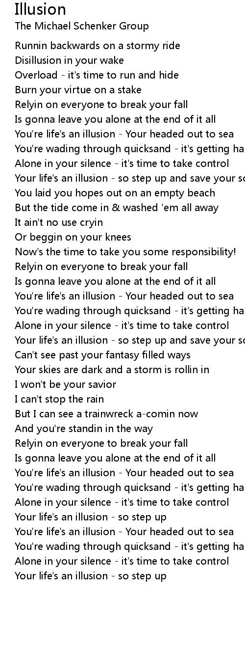 Your life's an illusion - so step up and save your soul |