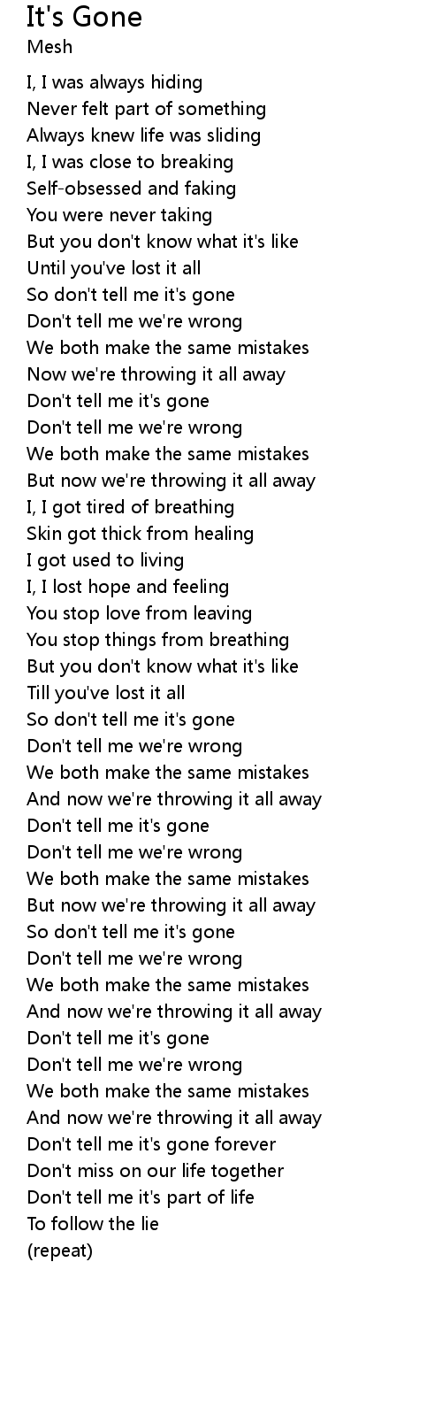 So don't tell me it's gone |