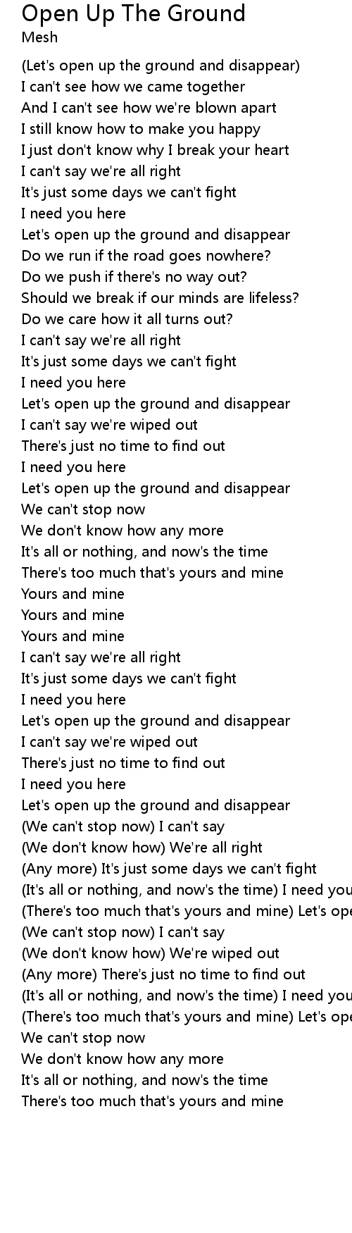 (There's too much that's yours and mine) Let's open up the ground and disappear |