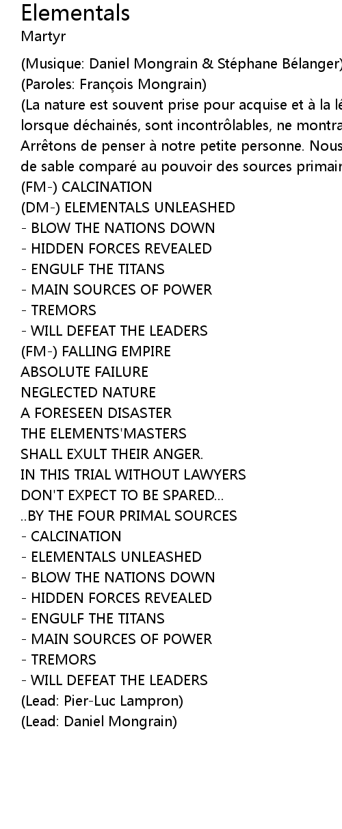 | Song | Elementals |