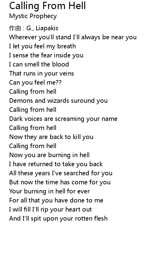 | Song | Calling From Hell |