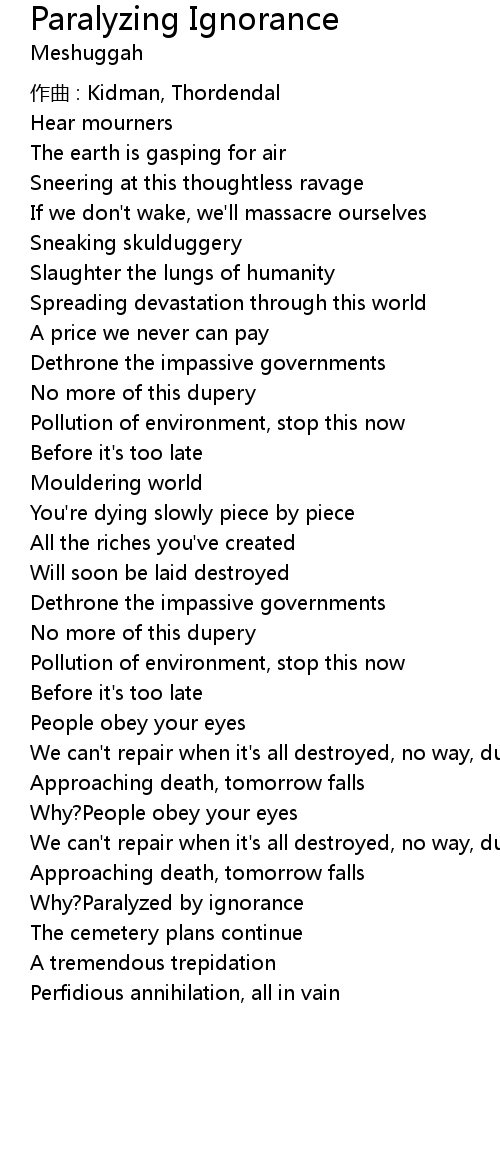 | Song | Paralyzing Ignorance |