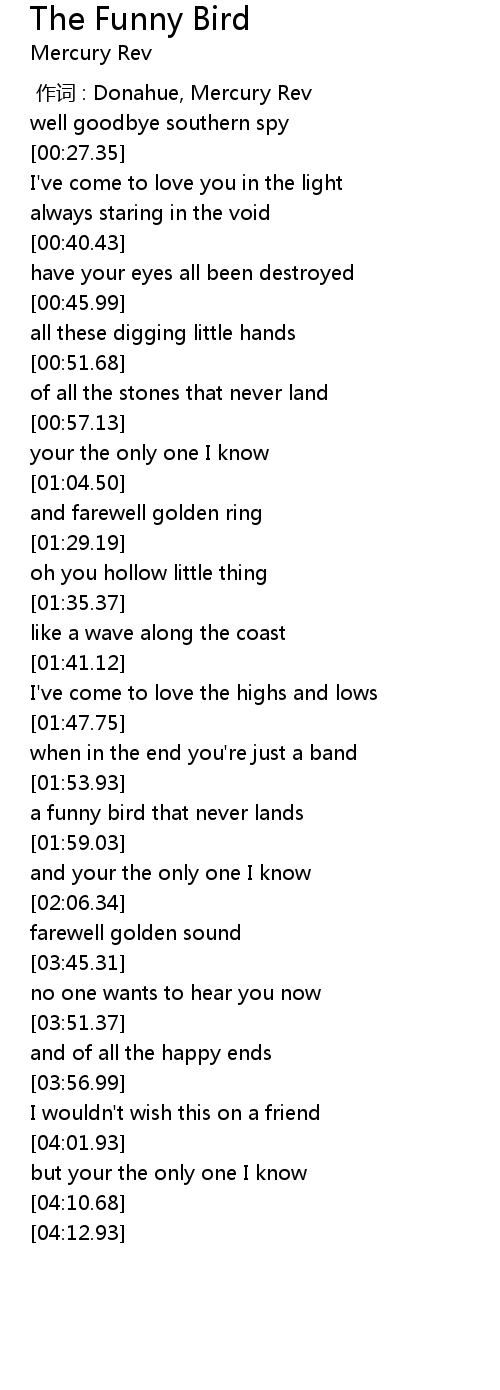 | [01:54.94] | a funny bird that never lands |