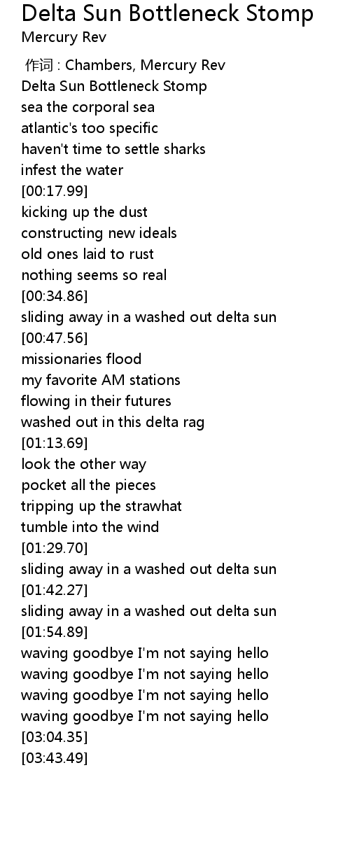 | [00:00.00] | 作词 : Chambers, Mercury Rev |
