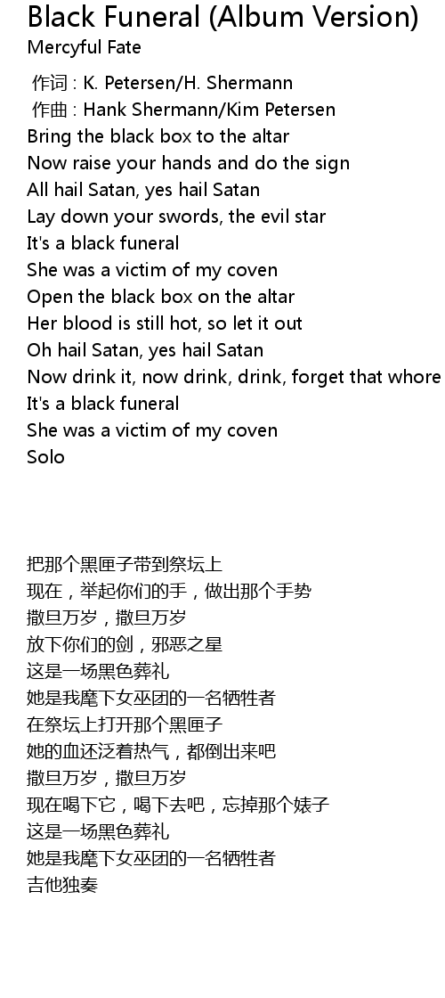 | [00:25.14] | All hail Satan, yes hail Satan |