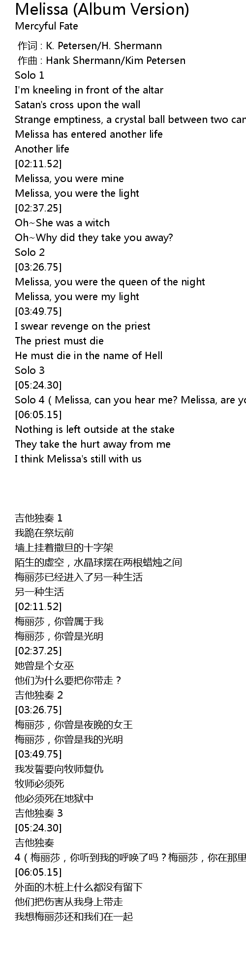 | [02:19.30] | Melissa, you were mine |