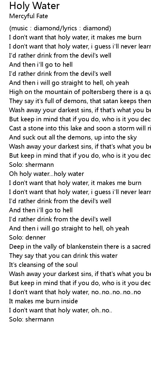 | I don' t want that holy water, oh.. no.. | |