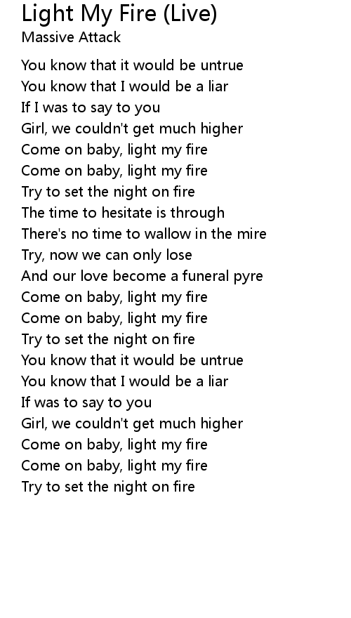 | Come on baby, light my fire | |