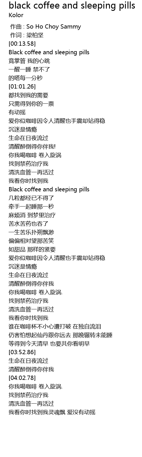 | [00:43.58] | Black coffee and sleeping pills |
