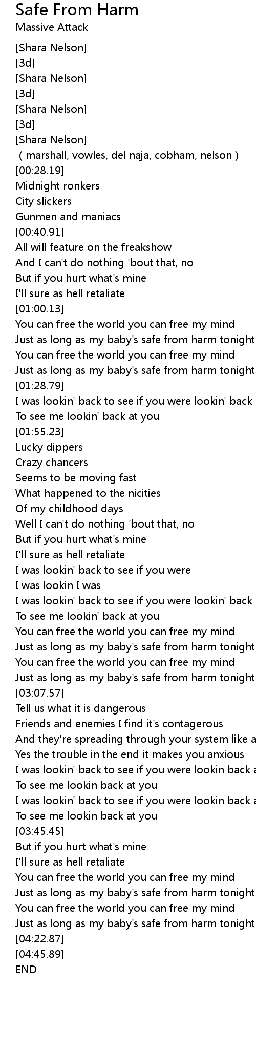| [03:00.91] | Just as long as my baby's safe from harm tonight |