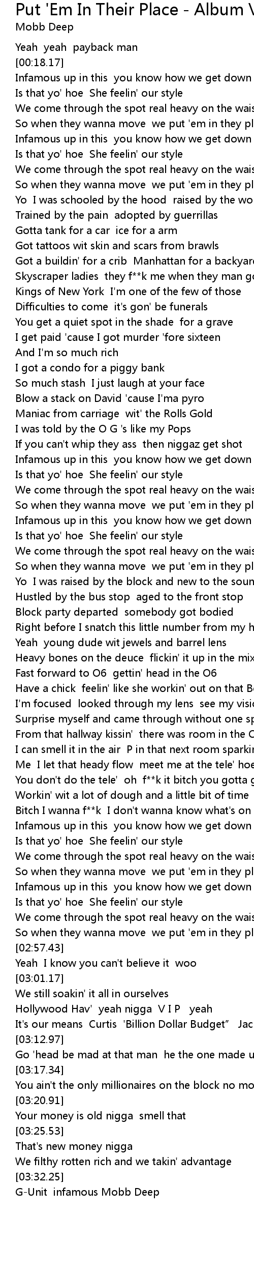 | [03:33.24] | G-Unit infamous Mobb Deep |