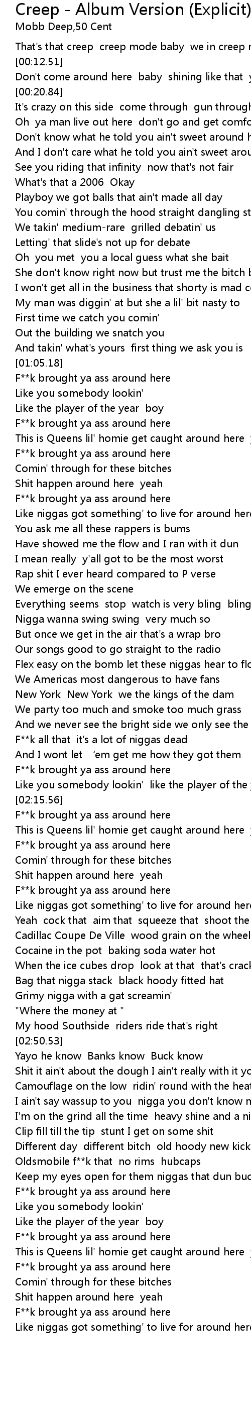 | [02:04.76] | F**k all that it's a lot of niggas dead |