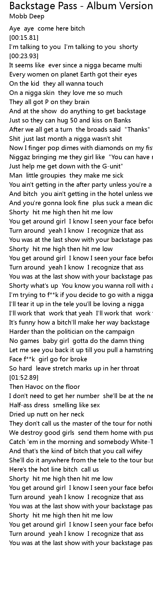 You was at the last show with your backstage pass |