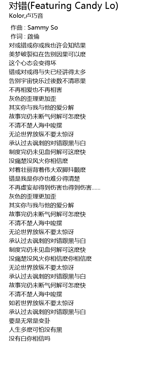 | [03:04.714] | 错是我是你亦也难分得清楚 |