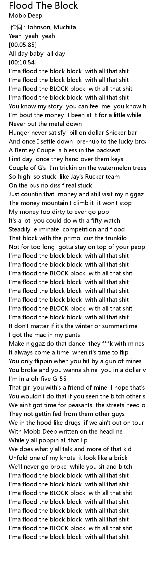 | [00:15.78] | I' ma flood the BLOCK block with all that shit |
