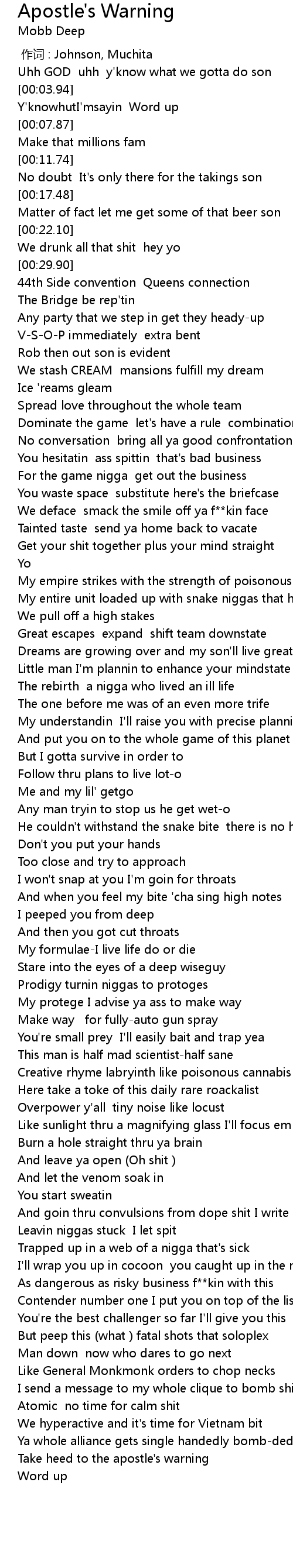 | [02:28.95] | And leave ya open (Oh shit ) |
